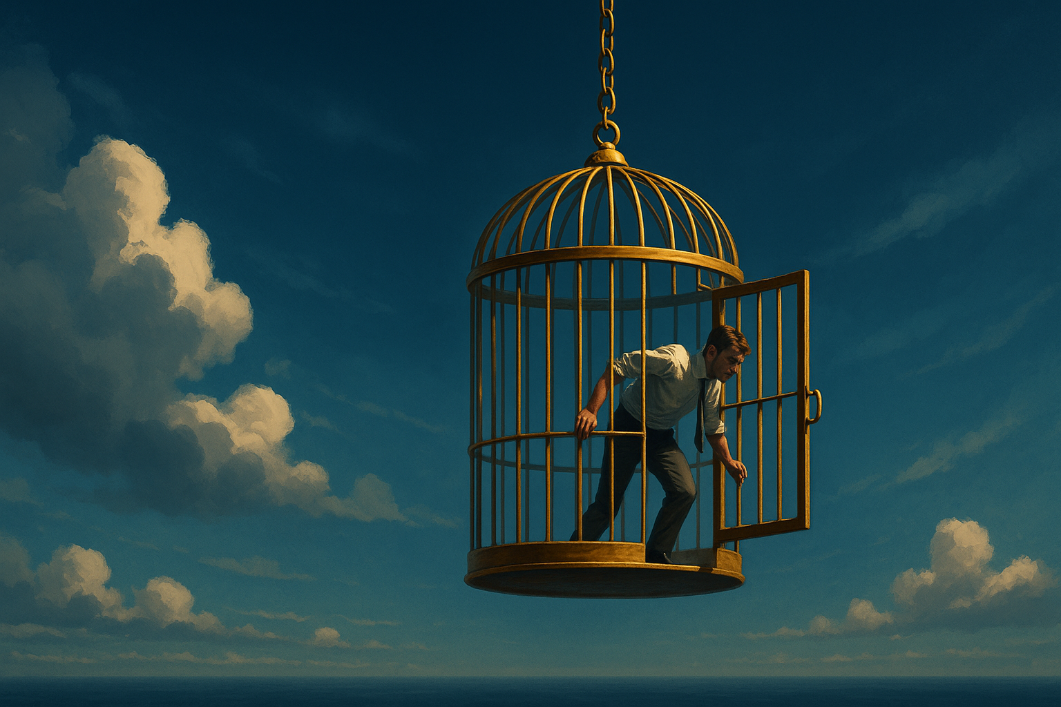 I’ve been living in this cage for 25 years now, and I’m sick of corporate life. Sick of not being able to get to the bottom of what I’m really meant to do. I’m ready to tear it all down. Take some real risks: sell the house, leave the country, figure out income later. I keep playing the scenarios in my head. I mentally imagine pulling the trigger and picture the headlines my friends will write for me—irresponsible, impulsive, midlife cliché. Maybe they’re right. But do I listen to this at the cost of continuing to live in the golden cage?